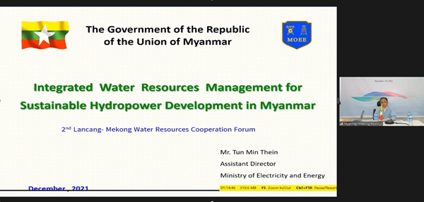 | 缅甸电力与能源部水电执行司助理主任Tun Min Thein先生作《缅甸水资源综合管理支撑水电可持续发展》报告 | |