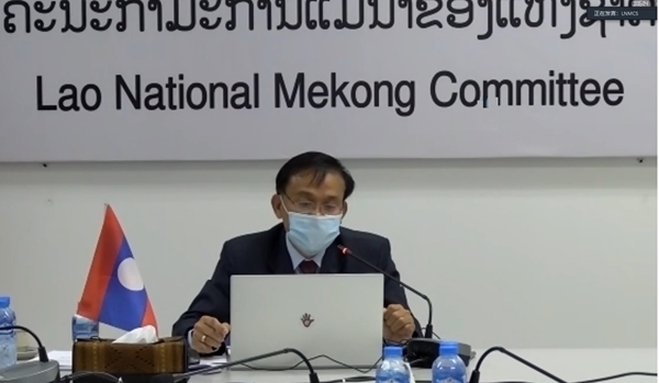 老挝自然资源与环境部湄公河国家委员会秘书处副秘书长Oudomsack Philavong主持国别报告