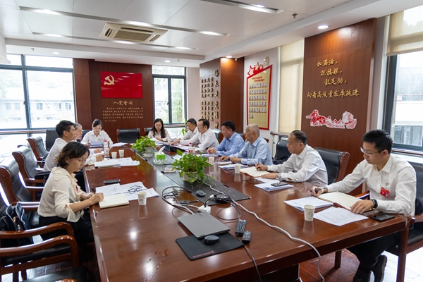 第十代表团进行热烈讨论,团长陈天荣主持会议。